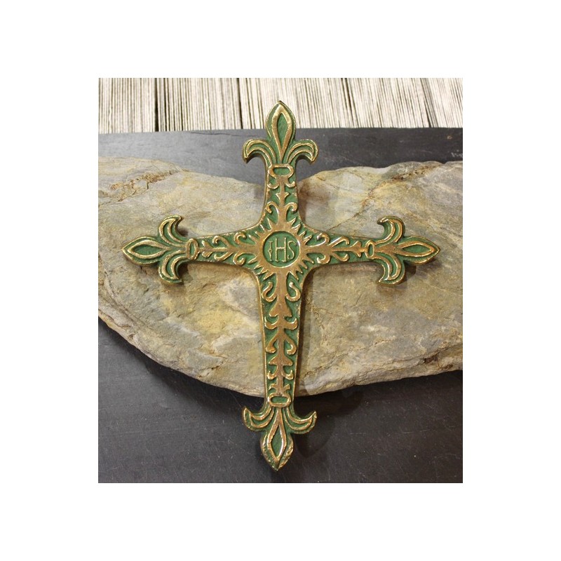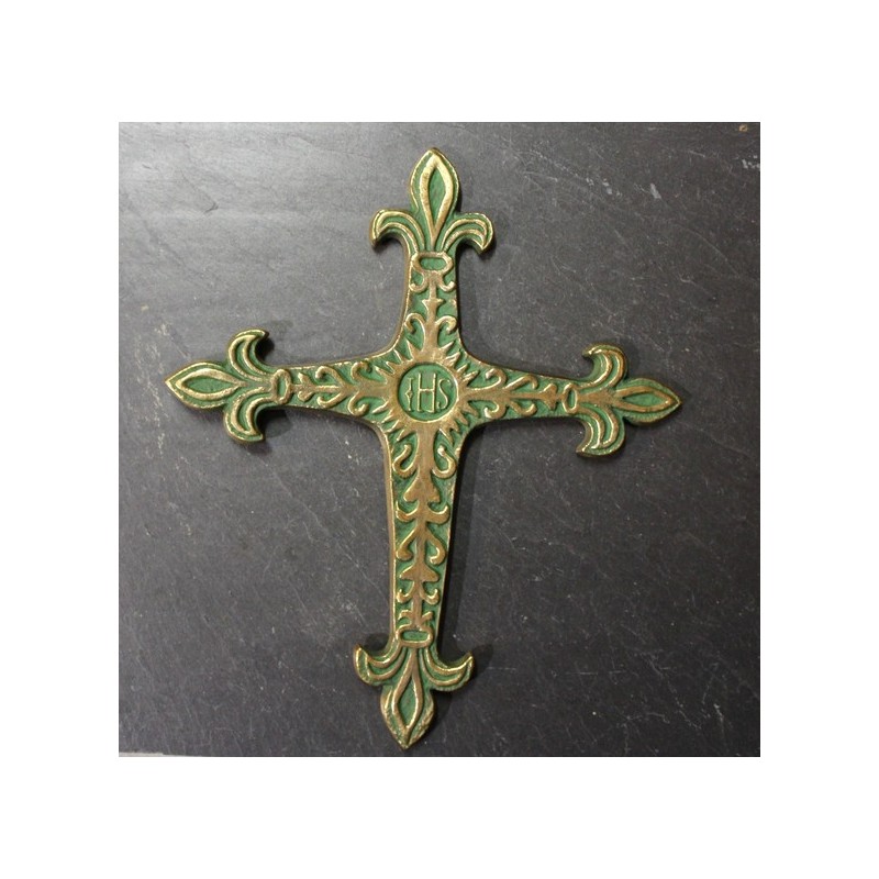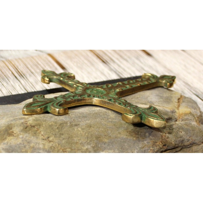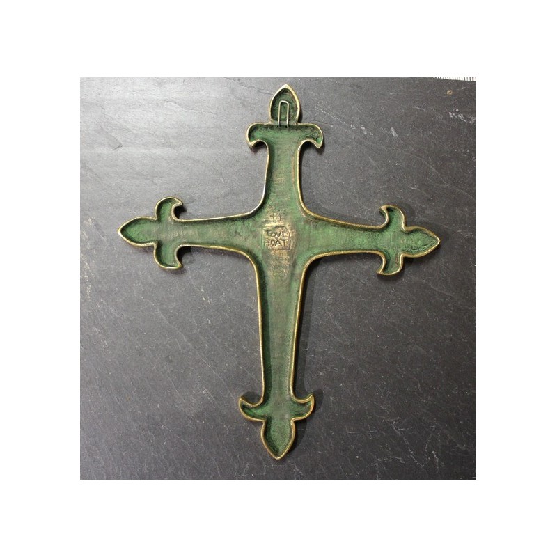 Croix en bronze, création de Pierre Toulhoat, fabriquée artisanalement à Quimper, en Bretagne.Poids : 163g.